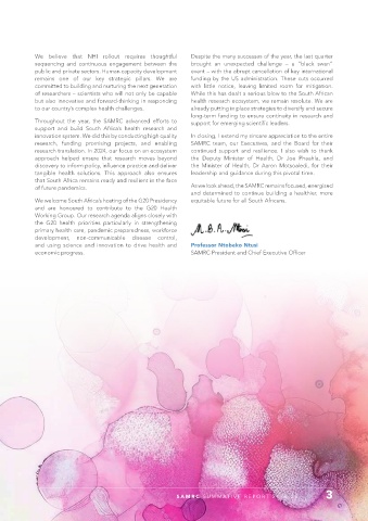 of future pandemics. As we look ahead, the SAMRC remains focused, energised