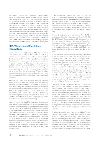many, particularly in rural areas, traditional medicines SAMRC continues to fund smaller grants in the IKS and