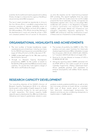 the implementation report and areas for action in 2025 SAMRC will continue to make key contributions in each
