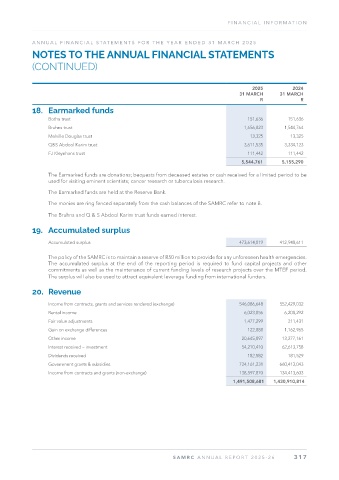 The monies are ring fenced separately from the cash balances of the SAMRC refer to note 8.